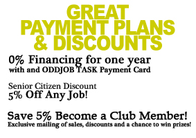 Keep the outside of your home looking great with our outdoor service programs, every year things need to be done around the home, and if you don’t keep up with them it could just add double the work and double the head ache, most basic home maintenance can be performed by the do it yourselfer but time always seems to be the issue in our busy fast passed life’s, and companies charge to much to take on these projects so people delay and delay until the problem becomes a nightmare and the price just went up with costly contractors, well not anymore with odd job tasks we specialize in odd tasks and services and our affordable rates and great payment options can’t be beat so this summer sit back and relaxes odd job tasks has your back !